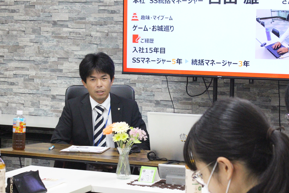 前半はパワーポイントを用いながら仕事の説明。スタッフとの掛け合いで進めさせていただきました。