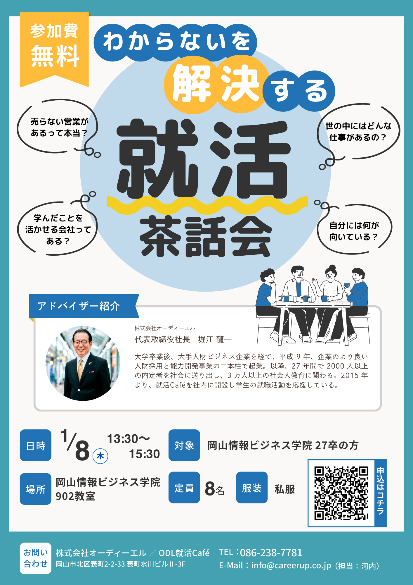 2026年1月8日に、岡山情報ビジネス学院様にて「就活茶話会」を開催しました。