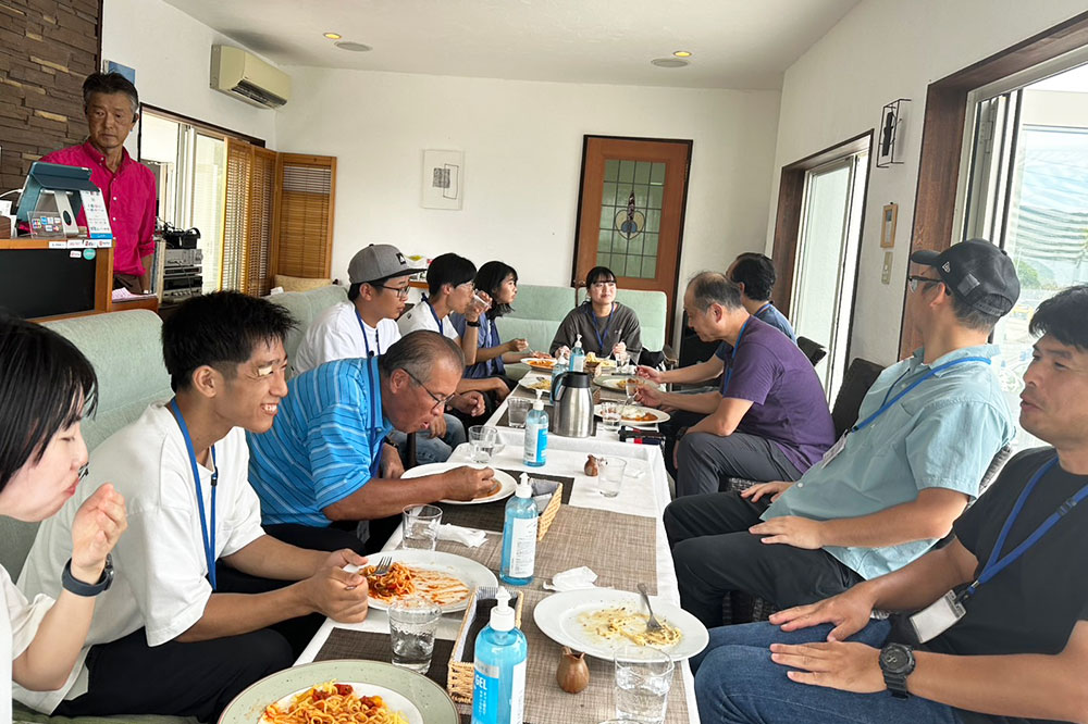 お昼は海が見渡せる「Cafe Reborn」さんにておいしいパスタやデザートをいただきながらワイワイ交流会!