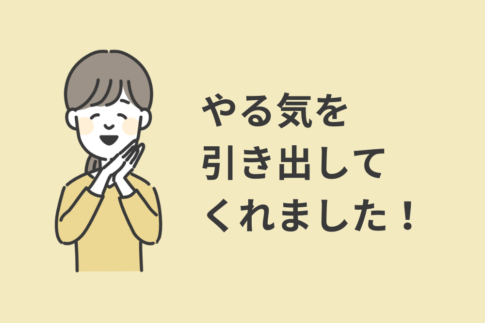 定期的な面談で私のやる気を引き出してもらっていました。 就活は、自分一人だとなかなかモチベーションを維持するのが難しい部分もありました。 そんな時に私のやる気を引き出してくださり、面談が何かの行動に移すきっかけになっていました。面談では、定期的な進捗確認や自分がするべきことについて相談をしてもらうことで、しっかりしないといけないという気に自然となっていました。 順調に就活を終えることができた理由の一つになっていたと思います。