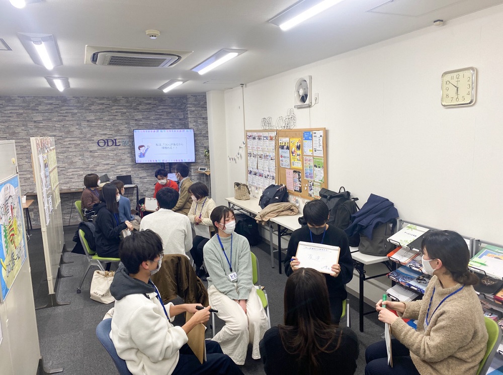 予想を超える人数からお申し込みをいただいたとのことで、急遽ODL就活Caféのセミナールームで開催。学生さんの率直な想いを聞くことができて私たちも大変参考になりました。