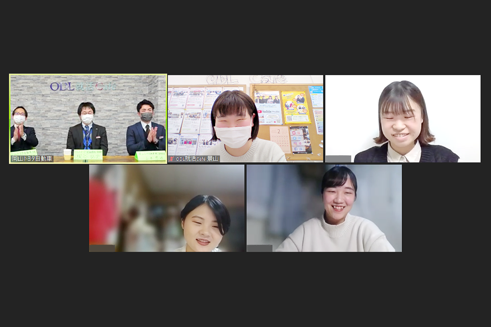 新型コロナウイルスの感染拡大状況を鑑みて学生さんはオンラインでの実施となりました。今回は岡山トヨタ自動車様より梶谷取締役、採用担当の太田さん・梶谷さんの3名にお越しいただきました。和やかな雰囲気で楽しかったというお声もあがっていました。