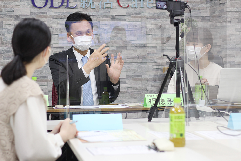 今回は飛鳥グループ協同組合様より谷口さんにお越しいただきました。終始穏やかな雰囲気で業界のことや就活のことなど様々なお話が展開されていました。