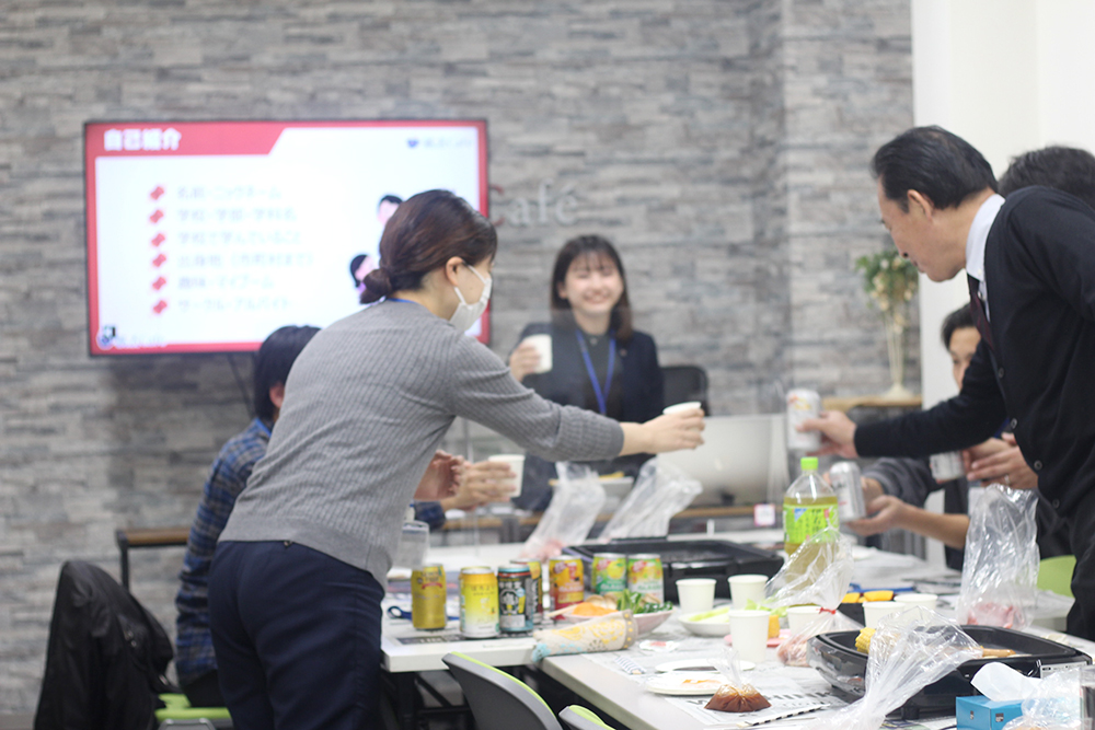 焼き肉を楽しみながら、就活にまつわるクイズや学生同士・スタッフとの交流を行いました。