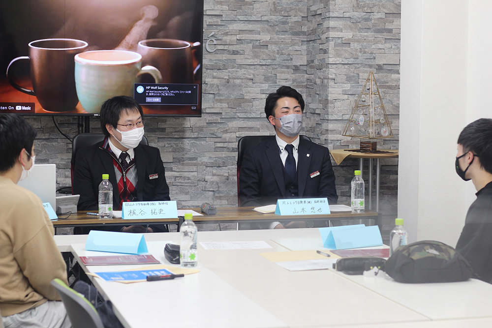 今回のゲストは、【岡山トヨタ自動車株式会社】様。梶谷取締役と採用担当の山本さんにお越しいただき、学生さんと企業さんとの交流を行いました。
