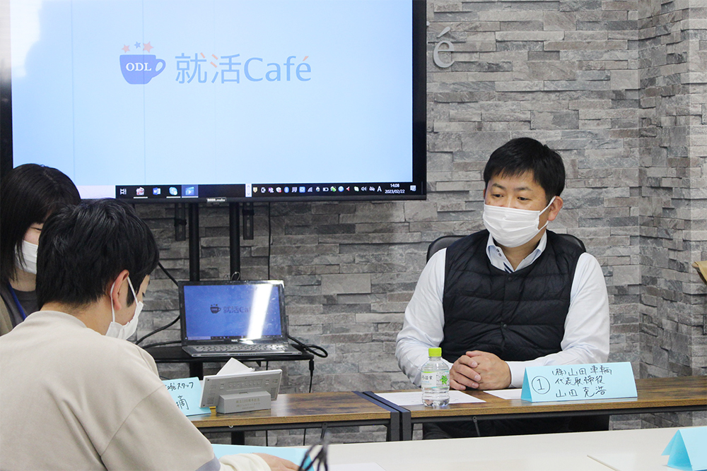 今回のゲストは、【株式会社山田車輌】様。代表取締役の山田社長にお越しいただき、学生さんと企業さんとの交流を行いました。