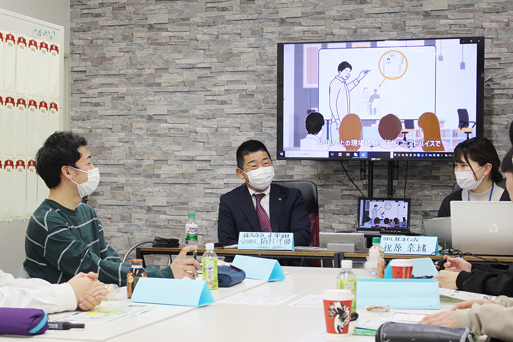 今回のゲストは、【株式会社正栄組】様。代表取締役の楢村社長にお越しいただき、学生さんと企業さんとの交流を行いました。