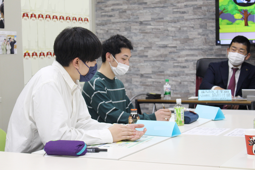 今回は全員男子学生で比較的多くの方にご参加いただきました。正栄組さんは裏方の仕事が多いですが、だからこそ見えるもの、貴重なご経験などをお話しいただき、学生さんからは驚きの声が多くあがっていました。