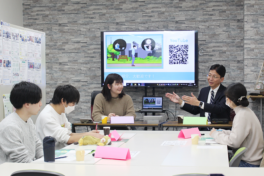 前回に引き続いて藤井社長にお越しいただき、3名の学生さんとの交流を楽しみました。