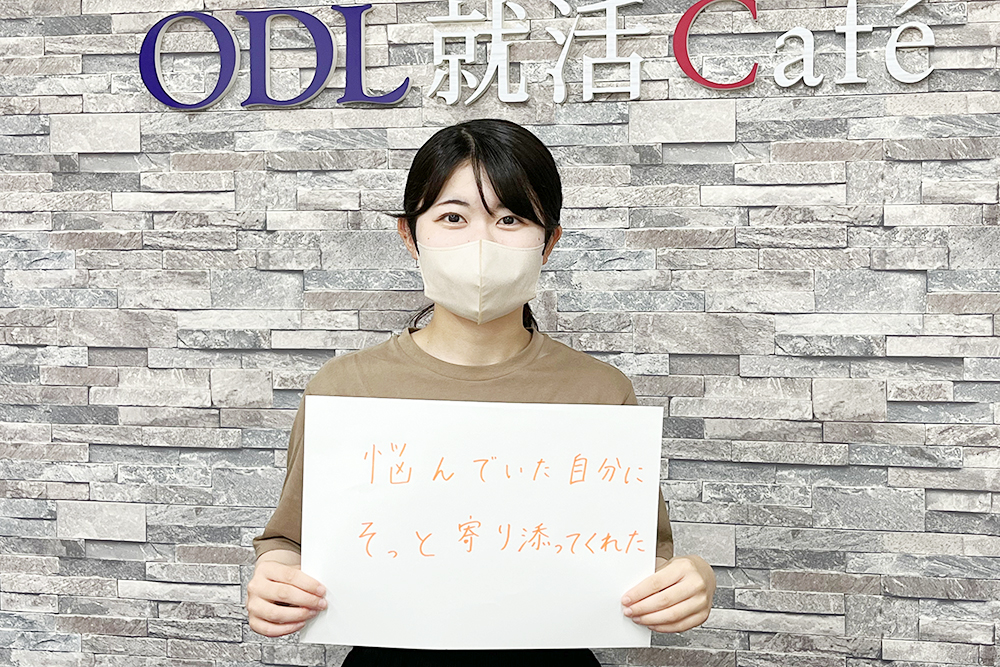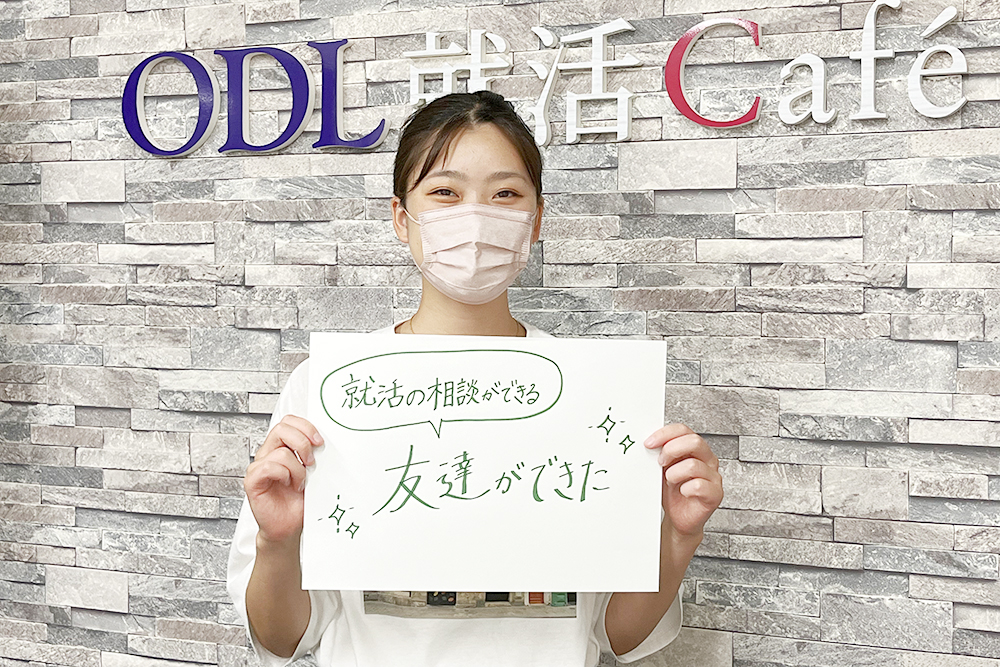 友達に誘われて何気なく参加したイベントからODL就活Caféを知りました。ODL就活Caféのスタッフの方とはいつでも気軽に話せる環境だったのがとても良かったです。例えば、履歴書の添削をしてもらうという目的で来ても添削だけをして帰るのではなく、合わせて「就活どうですか?」とその都度話を聞いてもらえて話ができたのがとても心強かったです。周りにいる親でも友達でもない目線から相談に乗っていただき、就活に関するアドバイスをたくさんしてもらえました。